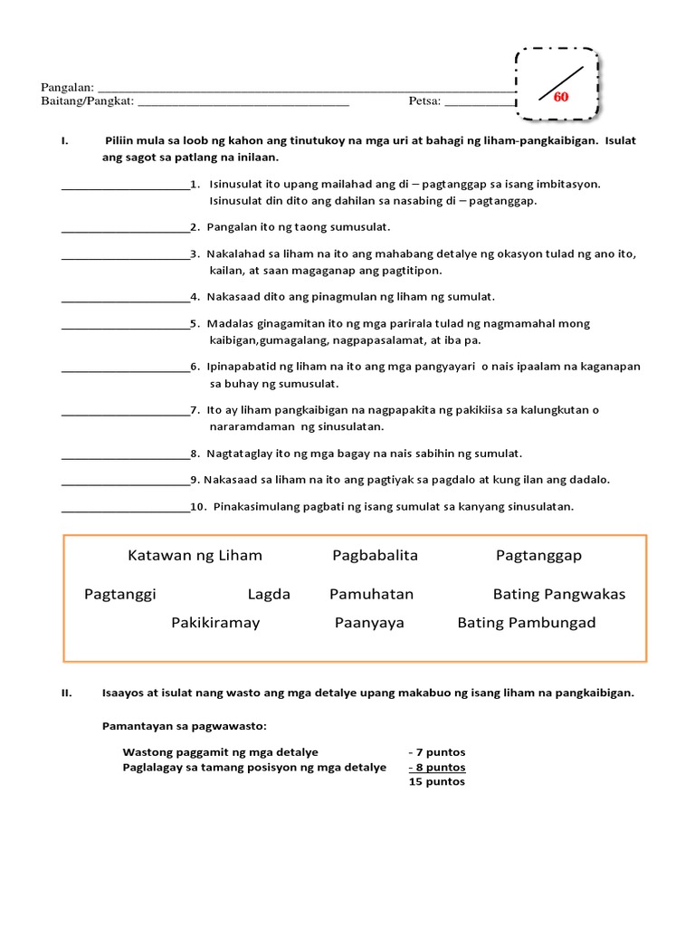 Showing top 6 worksheets in the category pagsulat ng liham grade 3. Mga bahagi ng liham. Some of the worksheets for this concept are filipino baitang 2 ikaapat na markahan pinag ayaw ayaw na gawain sa filipino filipino baitang 7 ikaapat na markahan. Once you find your worksheet click on pop out icon or print icon to worksheet to print or download.